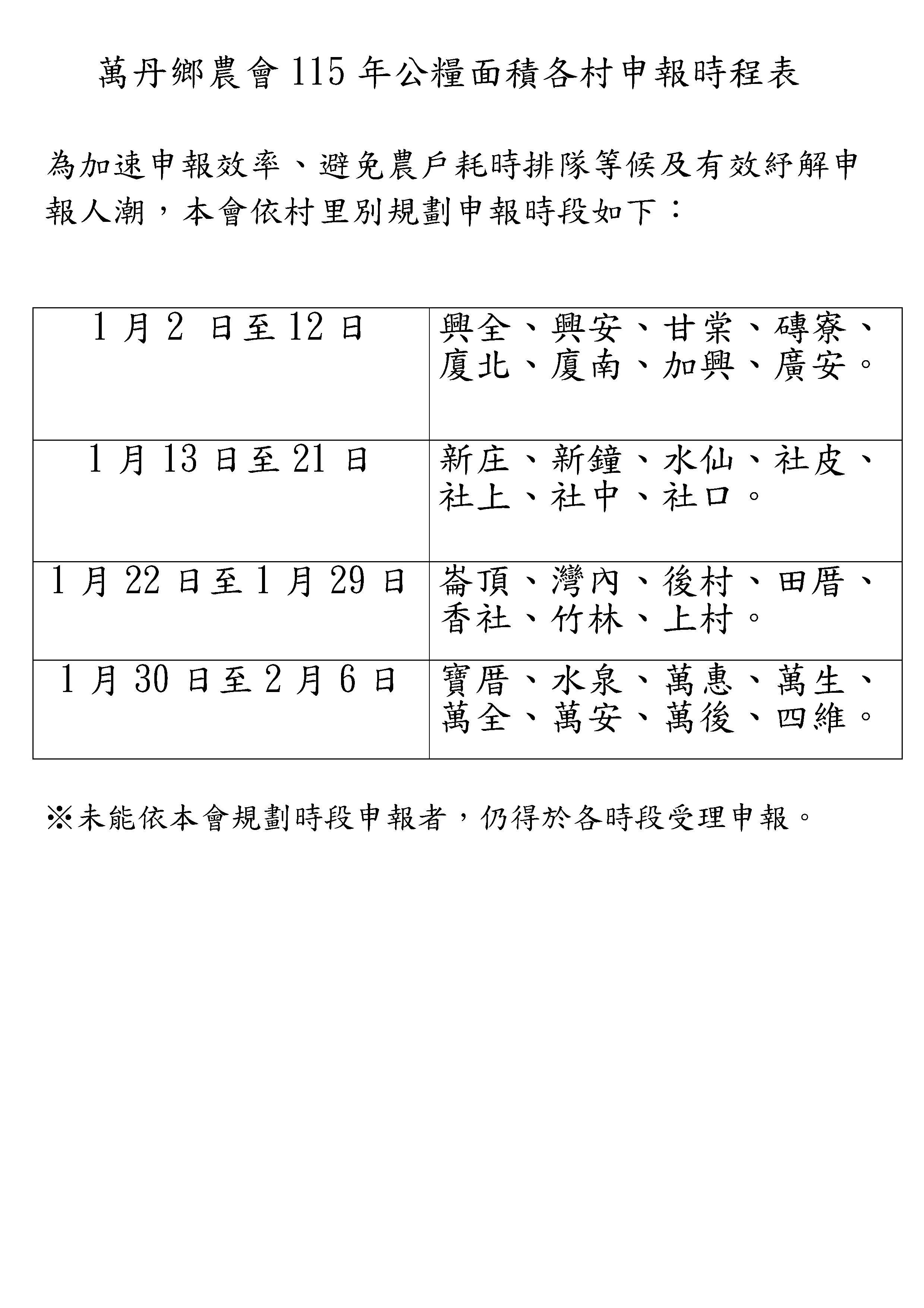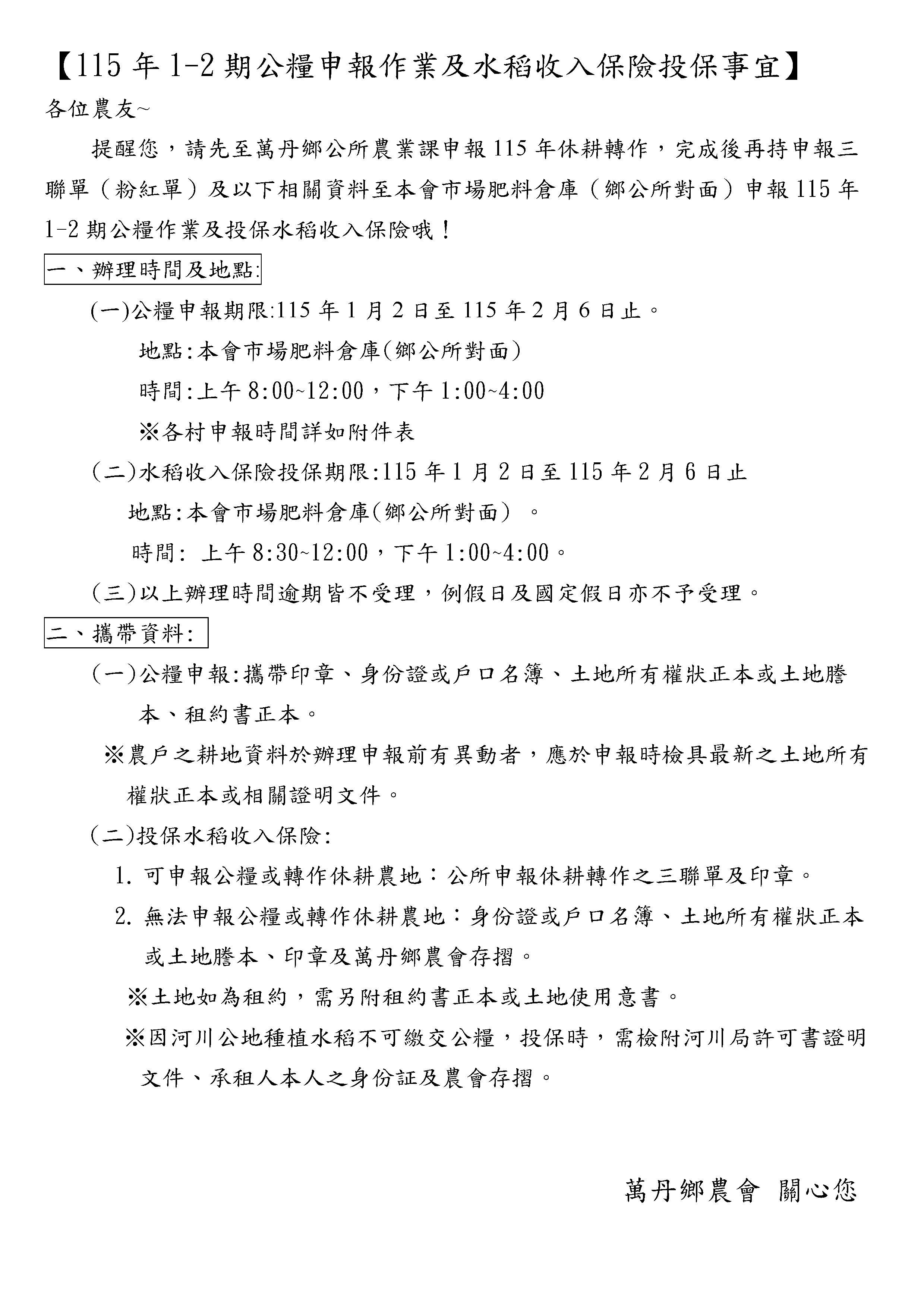 115年1-2期公糧申報作業及水稻收入保險投保事宜