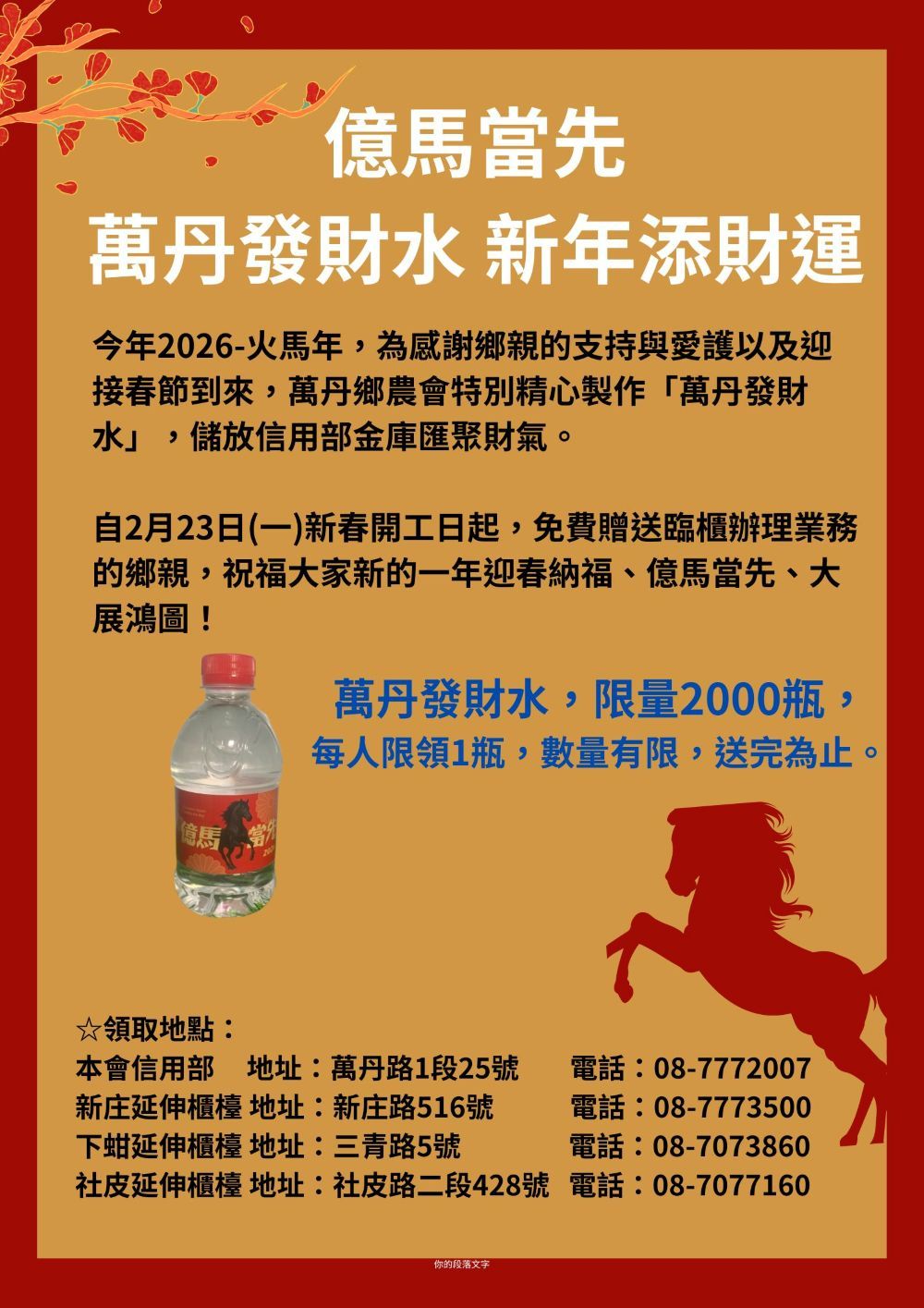 億馬當先~萬丹發財水 新年添財運